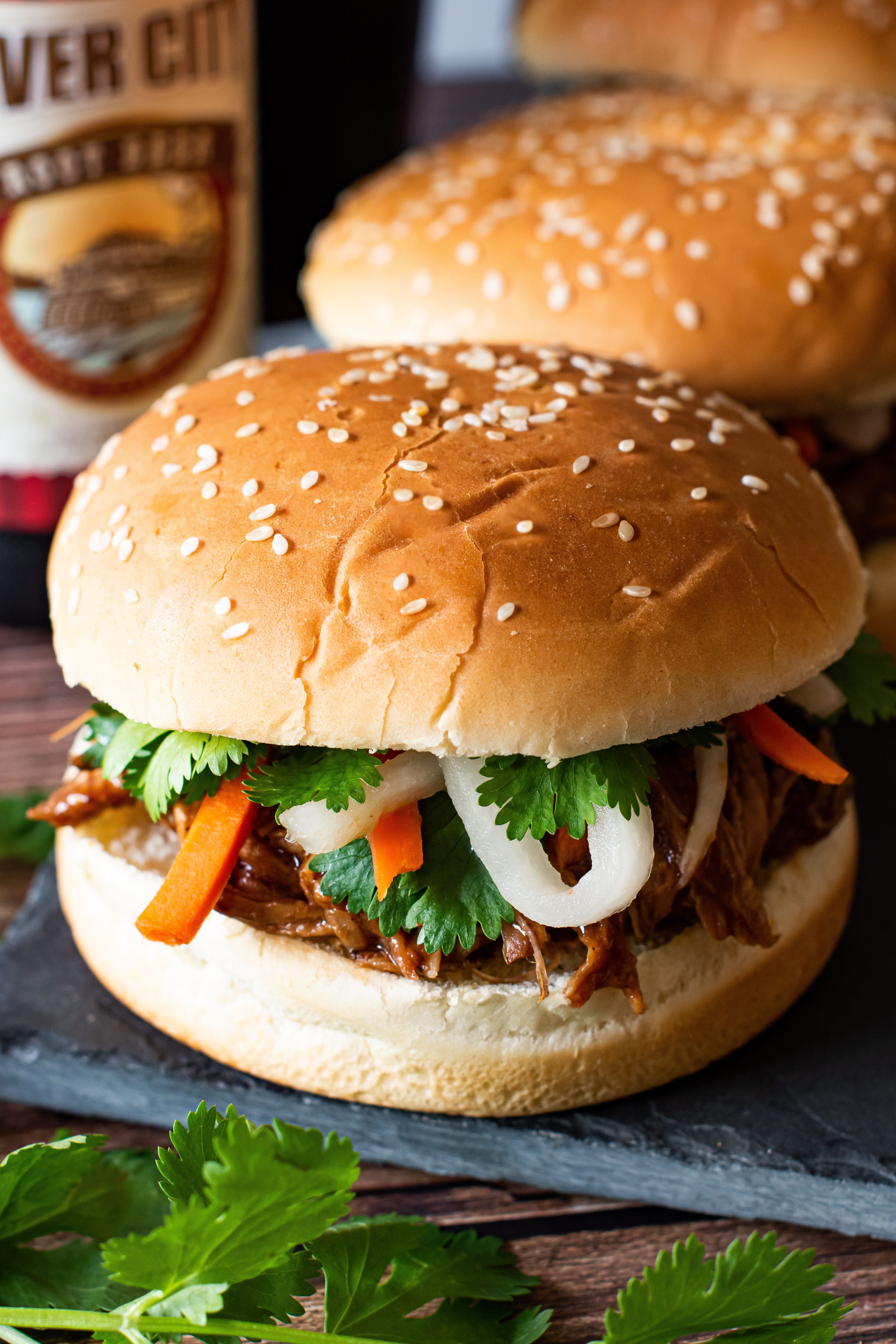 - Transfer the meat to a slow cooker, crockpot, or Instant Pot. Add the remaining ingredients and stir to combine. Cover and cook for 6 to 8 hours. The high or low setting and cook time will depend on your cooker. **See notes