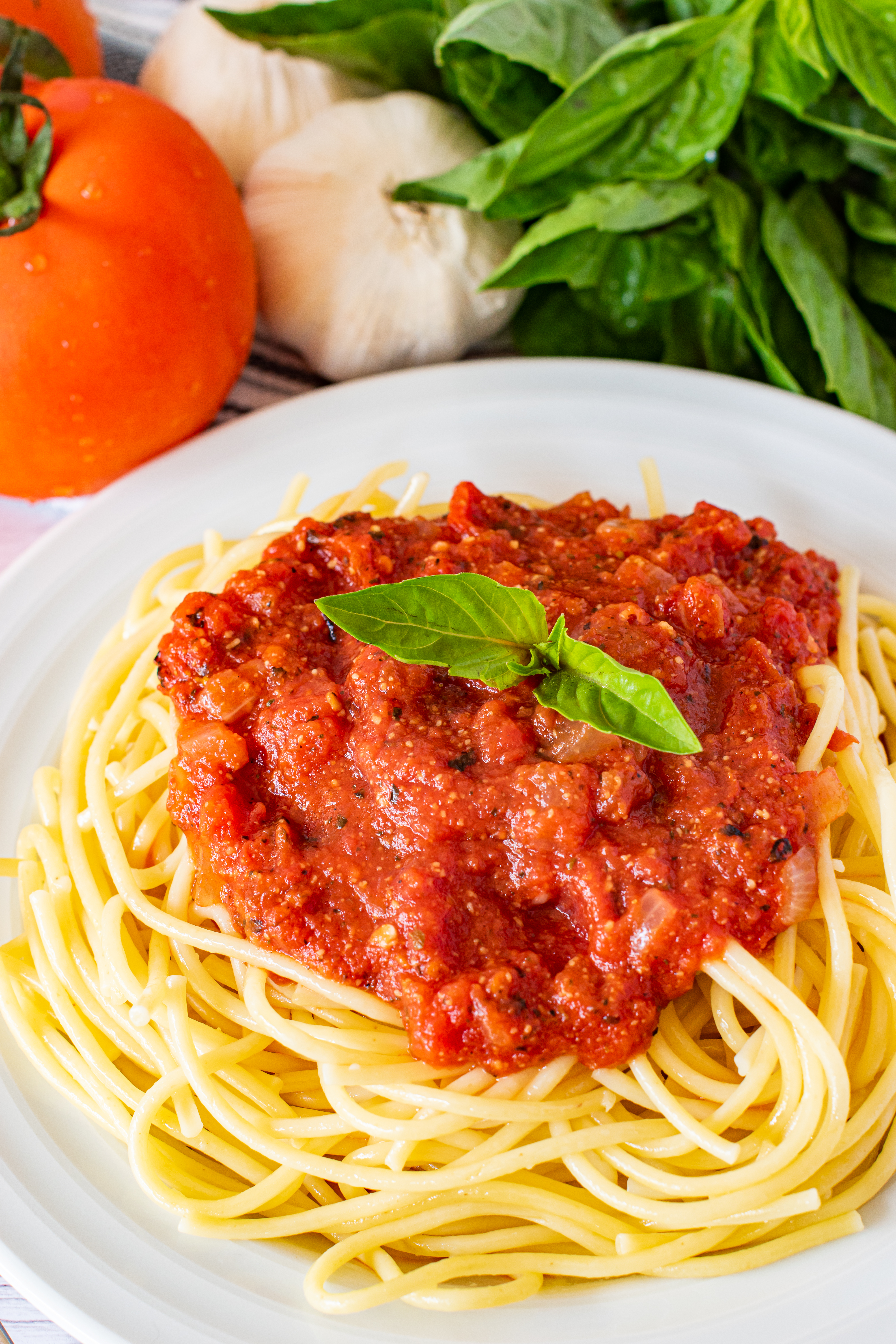 Homemade spaghetti sauce doesn’t need to be complex or time-consuming to be delicious. You just need good, quality ingredients to make a sauce full of amazing flavor. This recipe is perfect for making large batches to feed a crowd or freezing for quick, easy meals later.